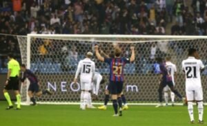 وفي الدقيقة 18 أرسل ميندي كرة عرضية حولها بنزيما بجوار القائم بقليل، وبعدها سجل برشلونة هدف التقدم عن طريق جافي مستغلاً تمريرة رائعة من ليفاندوفسكي قبل أن يسددها في الشباك.