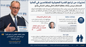 وأشار ميرتس إلى أن شيخوخة المجتمع الألماني وارتفاع أعداد المتقاعدين مقارنة بعدد العاملين سيضعان ضغوطاً متزايدة على نظام المعاشات، ما قد يؤدي إلى تراجع القوة الشرائية للمتقاعدين إذا لم تُتخذ إصلاحات هيكلية.