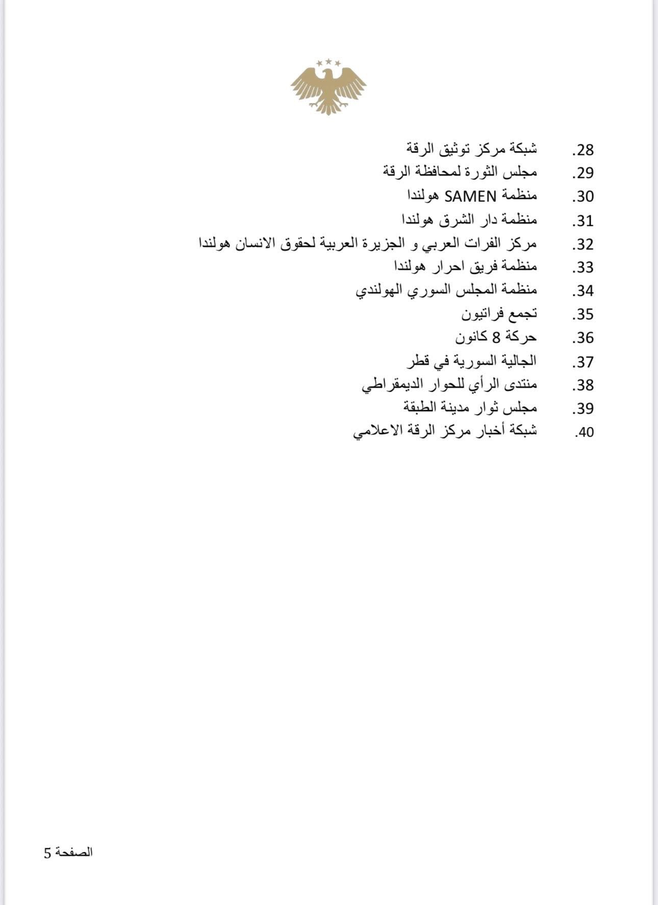 • تسليم ملف تنظيم “داعش” بكل مكوناته للدولة السورية.