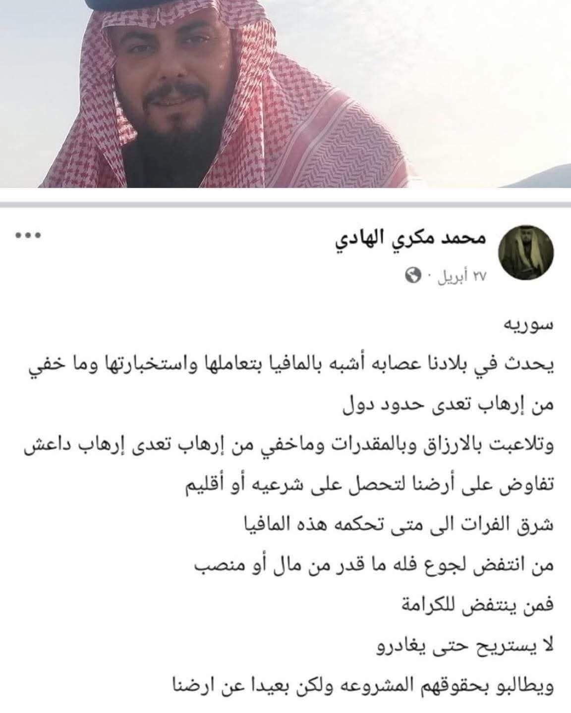 وينحدر الهادي من قرية السلحبية في ريف الرقة الغربي، وقد جرى اعتقاله قبل نحو شهرين على خلفية تلك المنشورات، ليُحال لاحقًا إلى محكمة استثنائية تُوجّه فيها تهماً تتعلّق بـ”الإرهاب”، وهو توصيف يرى فيه حقوقيون ونشطاء أنه أصبح يُستخدم بشكل متكرر لتجريم التعبير عن الرأي أو مخالفة التوجه السياسي للميليشيا.