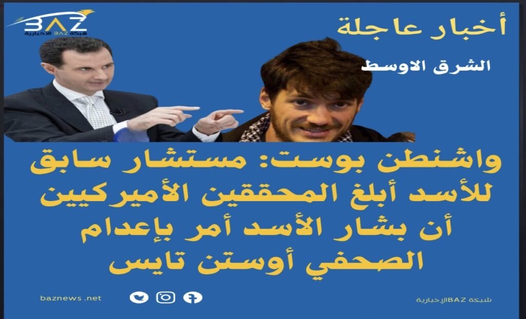 كشفت صحيفة واشنطن بوست الأميركية في تقرير جديد أن اللواء بسام الحسن، المستشار الأمني السابق لرئيس النظام السوري بشار الأسد، أبلغ المحققين الأميركيين بأن الأسد أصدر شخصياً أمراً بإعدام الصحفي الأميركي أوستن تايس عام 2013.