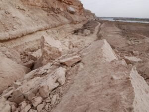 وتوقف العمل منذ اشهر بعد انهيار قسم من جبل الباغوز والذي تسبب بقطع الطريق عن محطة المياه وتدمير خطوط الضخ الرئيسية التي تغذي البلدة .