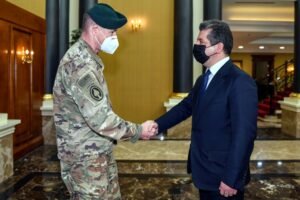 استقبل رئيس حكومة إقليم كوردستان مسرور بارزاني، اليوم الاثنين 28 شباط (فبراير) 2022، وفداً عسكرياً أمريكياً برئاسة كبير المستشارين العسكريين والملحق العسكري في السفارة الأمريكية لدى العراق الجنرال كيث فيليبس.