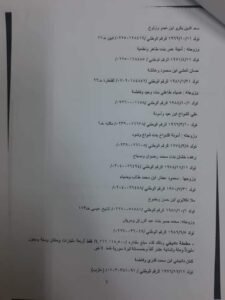 وتضمن القرار المكون من ١٥صفحة أسماء عدد من الشخصيات و زوجاتهم وبينهم مدراء سابقون للفرع ومعاونو مدراء و موظفون و عدد من المنشآت والمطاحن