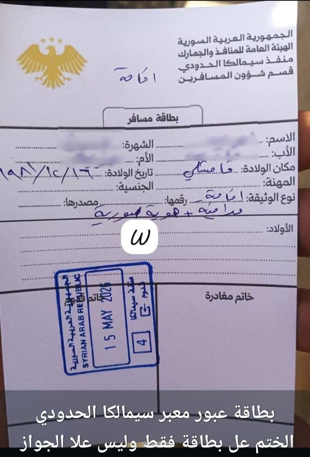 تشير معلومات متقاطعة إلى أن بعض المسافرين يدخلون إلى العراق بشكل قانوني، ثم يعبرون إلى سوريا عبر معبر سيمالكا باستخدام هذه الوثيقة، دون أن يظهر ذلك في سجلات جوازاتهم.