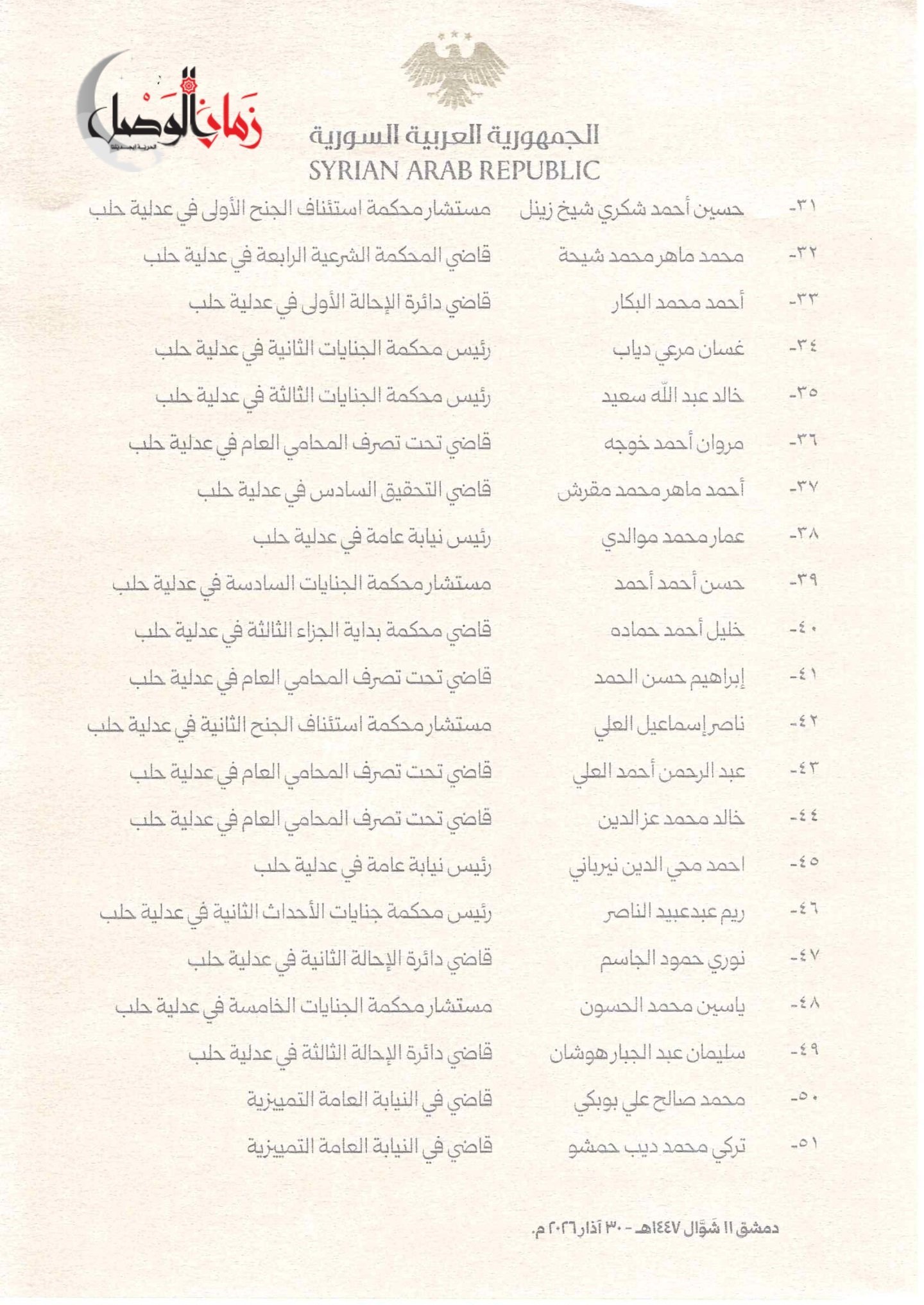 القائمة الكاملة بالأسماء كما وردت في المرسوم: